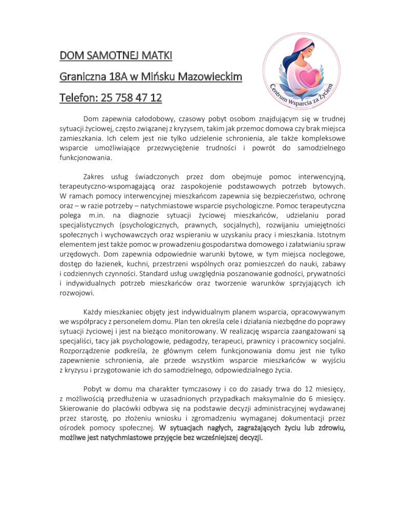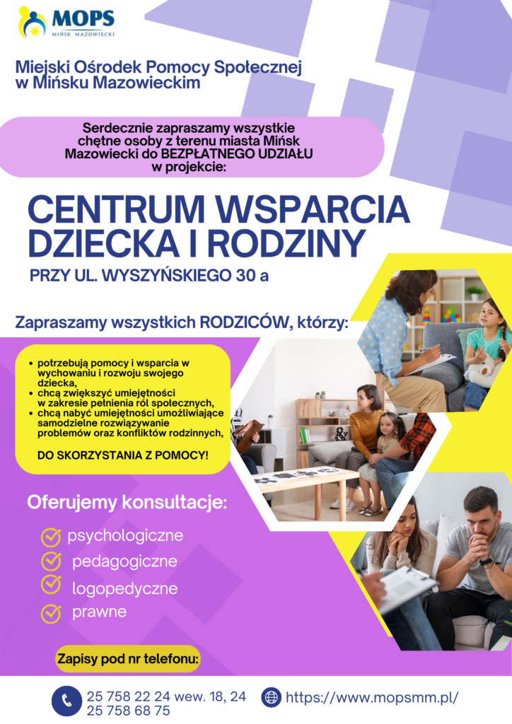 - Miejski Ośrodek Pomocy Społecznej w Mińsku Mazowieckim Kościuszki 25 A; 05-300 Mińsk Mazowiecki tel.: 25 758 22 24
