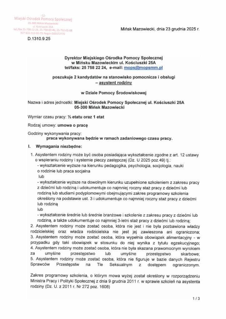 Nabór na asystenta rodziny